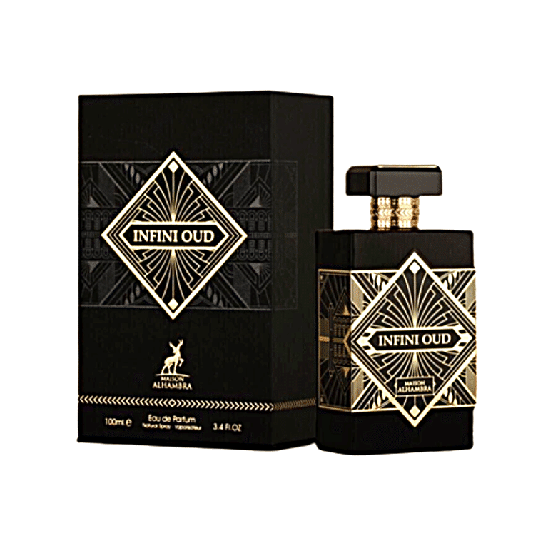 Alhambra Infini Oudh opens with vibrant top notes of Saffron, Nutmeg, and Lavender, creating an alluring and spicy blend. The heart of the fragrance features the captivating note of Agarwood, also known as Oud, which adds a rich and exotic touch. Finally, the base notes of Patchouli and Musk provide a warm and sensual foundation, leaving a lasting impression. This fragrance is a harmonious combination of aromatic spices, luxurious woods, and seductive musk, creating a captivating and memorable scent.