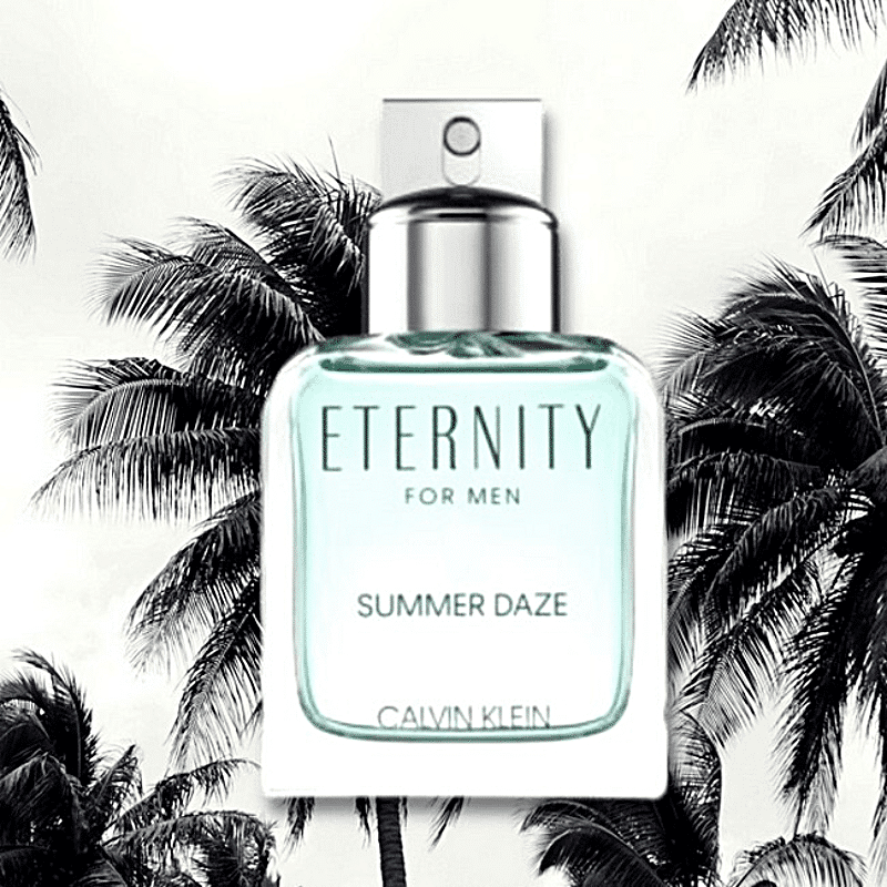 Eternity Summer Daze For Men by Calvin Klein is a Woody Aromatic fragrance for men. This is a new fragrance. Eternity Summer Daze For Men was launched in 2022. Top note is Mandarin Orange; middle notes are Mint and Lavender; base notes are Calypsone and Patchouli.