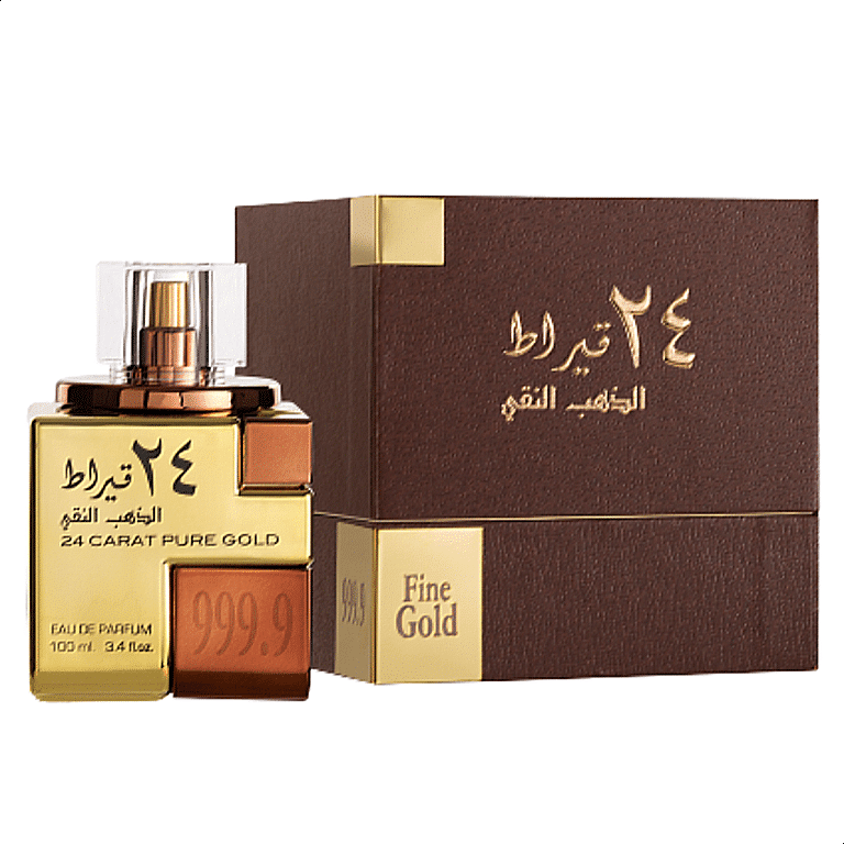 24 Carat Pure Gold by Lattafa Perfumes is a Amber Vanilla fragrance for women and men. Top notes are Agarwood (Oud), Saffron and Cinnamon; middle notes are Rose and Sandalwood; base notes are Leather, Incense, Musk, Amber and Vanilla.
